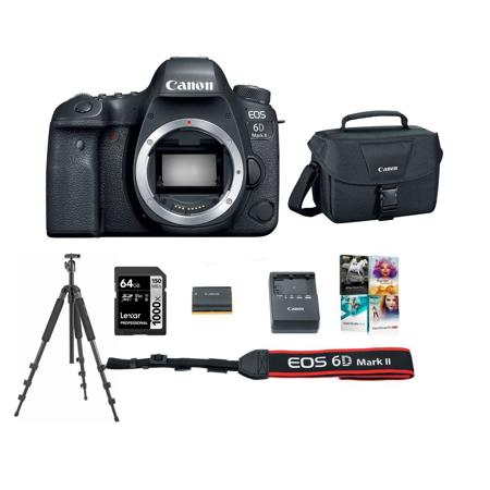 For superb performance on the go, the Canon EOS 6D Mark II camera puts full-frame performance into a compact, fully featured DSLR. Its 26.2 Megapixel CMOS sensor and DIGIC 7 Image Processor help deliver amazing results even at expanded ISO settings, making it great for challenging low-light situations as well as landscape, portrait and event photography. The EOS 6D Mark II also features an impressive optical viewfinder with 45 all cross-type AF points, fast and accurate Dual Pixel CMOS AF and a Vari-angle Touch Screen LCD for Live View operation which helps create unique angles. With the EOS 6D Mark II's speed to capture action and the versatility to create phenomenal photographs and Full HD 60p videos in numerous environments and lighting situations, the camera offers creative content makers a winning combination of advanced features in a portable package that's as fun as it is powerful.