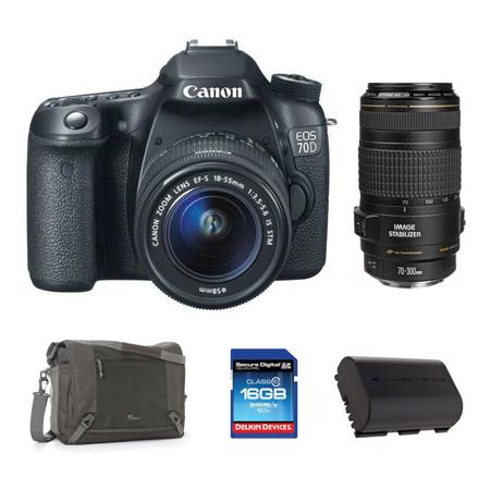 16 Accessories for Canon EOS 70D Digital SLR Camera with EF-S 18-55mm F3.5-5.6 IS STM Lens, Black - Bundle - with EF 70-300mm f/4-5.6 IS USM AF Lens, USA