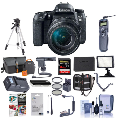 Let your creativity take control with the EOS 77D camera. Featuring an optical viewfinder with a 45-point all cross-type AF system and fast, accurate Dual Pixel CMOS AF with phase-detection, it helps you capture the action right as it happens. Alongside the viewfinder, the EOS 77D's extensive, customizable controls and brilliant image quality help you get the photo looking exactly how you want it. Capture the vibrant colors and fine details of inspirational scenes with the 24.2 Megapixel CMOS (APS-C) Sensor.
