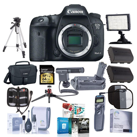 The Canon 7D Mark II is Canon's new high-end DSLR in Canon's APS-sensor lineup. Features include a 20.2MP CMOS sensor, 10fps burst rate, an intervalometer, a new battery, and a top ISO of 16,000 that's boostable to 51,200.