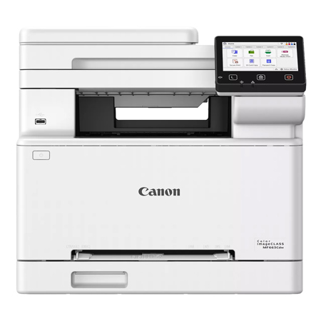 Designed for small / home offices and hybrid work environments, the imageCLASS MF663Cdw model balances speedy performance and minimal maintenance. The MF663Cdw is easy to set up and has a customizable, 5" color touchscreen that delivers an intuitive user experience. Produce crisp, colorful documents with fast print speeds of up to 26 pages per minute, using high quality Canon Genuine Toner 075 / 075 H. Use Poster Artist Online to create professional-posters, banners and signage. The MF663Cdw offers a plain paper capacity of up to 250 sheets, 1-sheet multipurpose tray, and 50-sheet simplex (1-sided) automatic document feeder. Easily connect wirelessly from computers or mobile devices. Print using a variety of mobile apps, including the Canon PRINT app using your compatible mobile device.