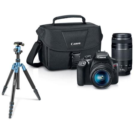 It comes with 75-300 lens not as good as the 55-250 lens Camera bag is too small just carries camera and one lens Camera is not mirrorless like the T7i Buy a t7i if you can afford it