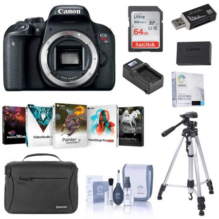 Take your photos to the next level with the image quality and near-instant autofocus of the EOS Rebel T7i camera. A 45-point all cross-type AF system and optical viewfinder lets you stay ready for that unforgettable moment with virtually no lag between what you see and what you get when you press the shutter. Fast and accurate Dual Pixel CMOS AF with phase-detection locks focus quickly and accurately to help make sure you don't miss a great shot. A 24.2 Megapixel CMOS (APS-C) sensor helps you capture special moments from vacations to family events in brilliant color, detail and vibrancy for beautifully memorable photos and videos. With a maximum ISO of 25600, you can capture photos in low light with minimal chance of blur. Built-in Wi-Fi, NFC and Bluetooth connectivity lets you share these precious moments with friends and family and upload them directly to the web.