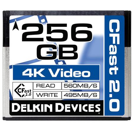 The Delkin Cinema CFast 2.0 Memory Card offers a generous storage capacity of 256GB, providing ample space for high-resolution video and image files.