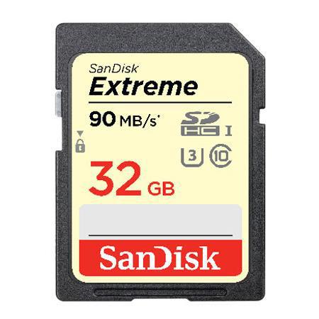 • SanDisk 32GB Class 10 U3 Extreme SDHC UHS-I Memory Card