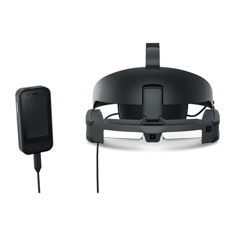 The Moverio BT-45CS is a turnkey hardware solution that combines a sleek Moverio headset and an intuitive intelligent controller, designed to maximize ease of use in dynamic work environments. Representing a new generation of AR smart glasses from Epson, the Moverio BT-45CS is equipped with all-new Si-OLED technology, a proprietary optical engine, and a binocular see-through Full HD display with a 34-degree field-of-view. This allows for seamless integration of digital content with the outside world.