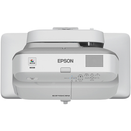 Compatible with SMART Board M680 and 880 interactive whiteboards, the PowerLite 680 ultra short-throw XGA presentation display for SMART supports the SMART Extended Control Panel and features advanced network connectivity. Pair it with a SMART Board (sold separately) featuring SMART Learning Suite tools for an integrated solution. Offering up to 3x Higher Color Brightness than competitive models, Epson 3LCD projectors and displays ensure vivid lessons. Delivering 3500 lumens of color and white brightness, the 680 projects a 77" image from less than 7". Easy network connectivity and included software allow remote management and presentation. Plus, its lamp lasts up to 10000 hours in ECO Mode.
