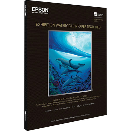The Epson Exhibition watercolor paper textured (8.5x11" 25 Sheets) is manufactured with the revered mould-made process. It utilizes custom made felts for a unique, highly textured watercolor surface and finish to help achieve the best combination of image quality and image permanence. In addition to the 22mil caliper and 310gsm weight, Epson Exhibition watercolor paper is 100 percent cotton fiber that is acid, lignin and OBA-free, making it an ideal fine art paper for today's printing professionals.