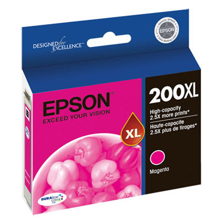 The Epson High-Capacity Magenta Ink Cartridge prints amazing documents and great photos. There's no need to spend additional money on specialized cartridges to print on either plain or photo paper. Epson's revolutionary DURABrite Ultra Ink produces smudge, fade and water resistant prints that look brilliant on both plain and glossy photo paper.