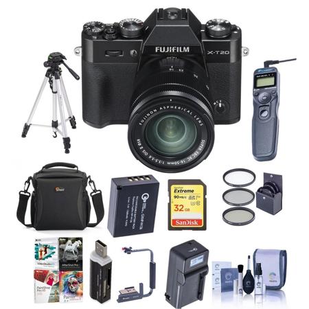 Fujifilm X-T20 24.3MP Mirrorless Digital Camera with XC 16-50mm f/3.5-5.6 OIS II Lens, Black - Bundle With Camera Case, 32GB SDHC Card, Spare Battery, Tripod, Remote Shutter Release, Software Package, More