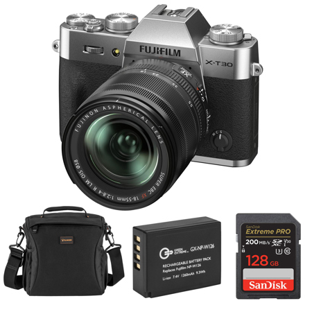 Capture the world in stunning detail and vibrant color with the Fujifilm X-T30 II Mirrorless Camera and XF 18-55mm lens. This bundle also includes an NP-W126 Battery, a 128GB UHS-I Memory Card, and a Shoulder Bag, providing everything you need to start creating and sharing your memories.