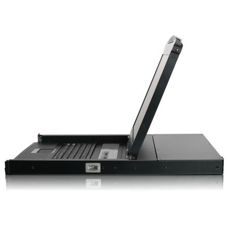 The Iogear 17" LCD Combo Console (8-Port KVM Switch, Cables) integrates a keyboard, a sliding / retractable 17" (43.18 cm) TFT LCD Active Matrix monitor, a touchpad and an 8-port KVM switch in a universal 1U rack mount space. In addition, it comes with 4 USB and 4 PS/2 KVM cables and is compatible with Windows, Mac, Sun Solaris and Linux platforms. The 8-port KVM (keyboard, video and mouse) switch can be connected to 8 VGA, USB or PS/2 ports. Moreover, up to 8 additional compatible KVM switches can be cascaded together, allowing you to control up to 128 computers from a single KVM console.