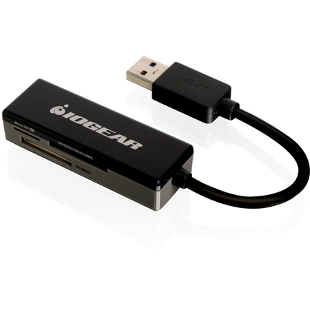 The IOGEAR USB 3.0 Multi-Card Reader with three slots works with the most popular memory card types- SD, microSD and Memory Stick. The GFR309 is compatible with all the current generations of these card formats including SD, SDXC, microSD, microSDXC, Mini SD, MMC, Memory Stick and MS Duo. USB's SuperSpeed transfer rate of up to 5Gbps is ideal for moving large files such as full-resolution photos, documents and videos between computers and mobile devices. The GFR309 is the perfect companion for smartphones, tablets, cameras, etc.