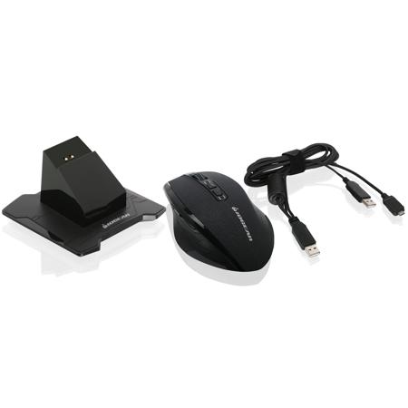 The Charging Dock keeps the Chimera M2 charged when not in use and also serves as the base station for the 2.4GHz wireless transceiver. The Charging Dock glows with a beautiful blue illumination while the Chimera M2 is in use and wirelessly connected. While the Chimera M2 is docked, the illumination pulses slowly with a "breathing" effect indicating the mouse is charging.