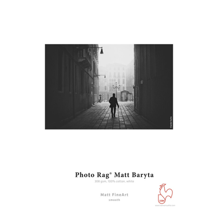 Hahnemuhle Photo Rag Matt Baryta, the first matt baryta paper of the Photo Rag family lends FineArt prints a truly unique character and artistic note. The white cotton paper contains no optical brighteners and features a very fine, discreet surface. In combination with the matt premium inkjet coating, it guarantees outstanding print results with impressive reproduction of vivid colors, details, and deep blacks.