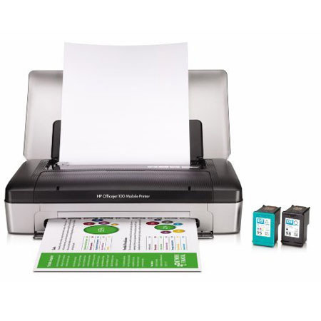 The Hewlett-Packard Officejet 100 Mobile Printer is a convenient and compact solution for making prints when you're out of the office. Whether it's in your vehicle, on-site, or anywhere in between, the Officejet 100 is ready to print at up to 22 pages-per-minute (18ppm for color). Using Bluetooth technology the printer connects with your smartphone or laptop for quick, seamless printing in any environment.