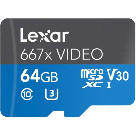 Designed for your action camera or drone, the Lexar Professional 667x VIDEO microSDXC UHS-I card lets you quickly capture, playback, and transfer a large number of files, including 1080p Full-HD, 3D, and 4K video, with read speeds of up to 667x (100 MB/s). These cards leverage Class 10, UHS Speed Class 3 (U3) and Video Speed Class 30 (V30) ratings. Includes SD adapter.