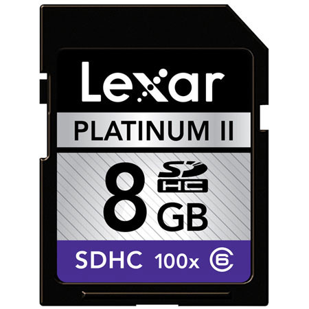 The Lexar 8 GB, 100x Platinum II Secure Digital High Capacity (SDHC) Memory card is a high-speed, high-capacity card designed for sustained rapid-fire picture-taking and full-motion video with SDHC-enabled digital devices.