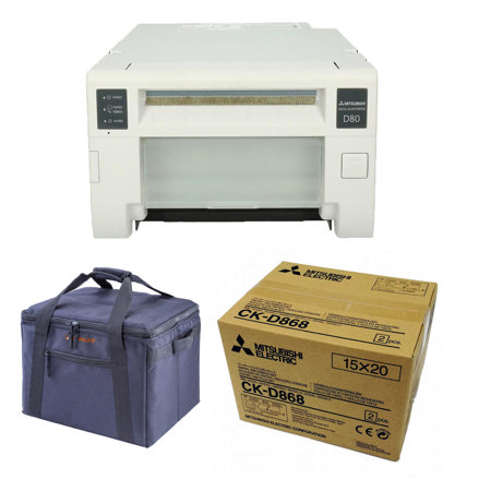 Mitsubishi CP-D80DW Dye Sublimation Thermal Transfer Full Color Photo Printer 300 dpi, 2 Print Sizes/1 Media, 6" Roll - With CK-D868 2x Laminated Photo Paper Roll and 2x Ink Sheets, Slinger Printer Carrying Case