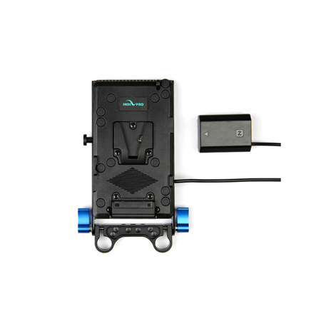 The V-Mount Plate includes an integrated NP-FZ100 dummy battery designed to provide power to the camera. It's an essential part of the V-Mount Plate setup.
