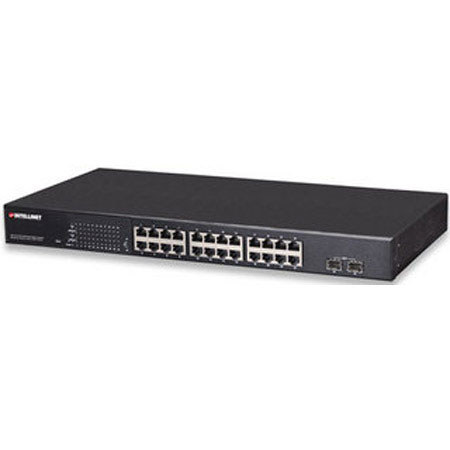 The Intellinet Network Solutions 24-Port PoE+ Web-Managed Desktop Gigabit Switch is designed to pass both data and electrical power to a number of PoE-compatible devices via standard Cat5e or Cat6 network cables. Equipped with 24 Gigabit Ethernet ports, all of which support 802.3at/af Power over Ethernet (PoE/PoE+), this switch and can power Wireless LAN access points and bridges, VoIP (Voice over Internet Protocol) telephones, IP surveillance cameras and more while delivering network speeds of up to 1000 Mbps.
