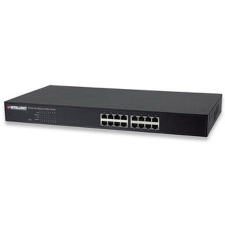 The Intellinet PoE+ Office Switch is equipped with 16 10/100Base-TX Fast Ethernet ports, all of which support 802.3af/at Power over Ethernet (PoE/PoE+). Besides being a versatile network LAN switch, it also provides a Power over Ethernet option that supplies power injection to 802.3af/at-compliant devices, such as IP phones, wireless access points and network cameras.