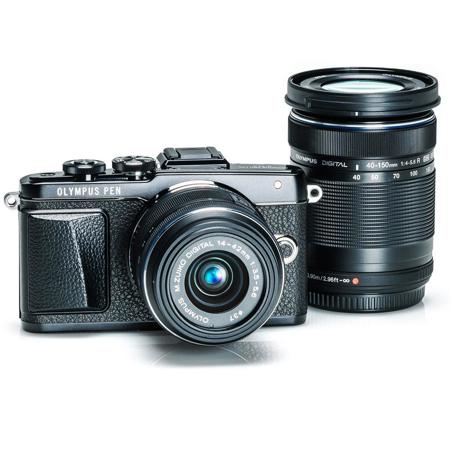 7 Accessories for Olympus PEN E-PL7 Mirrorless Camera, Black 2 Lens Kit with 14-42mm 2R Lens & 40-150mm f4.0-5.6 R Lens