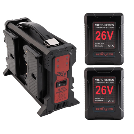 Power your 26V devices with this Micro-Series 26V 265Wh Battery and Quad Charger Kit from Indipro. This kit includes 2x Gold Mount Micro-Series 26V 265Wh lithium-ion batteries and 1x Quad 26V Gold Mount battery charger. The following is more information for each product: