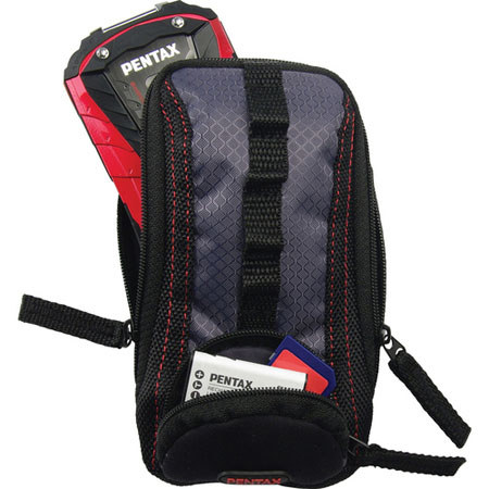 The Pentax Adventure Case with Carabiner is a simple, affordable and very functional way to carry around your Pentax W, WP, WG-2 Series items. The rip-stop nylon composition is rough and durable. It features dual 180-degree zippers for easy access to the contents. A front neoprene pouch can be used for batteries, memory cards or a cleaning cloth. It is carried around by its belt loop or handy carabiner that can be attached to a larger bag or backpack.