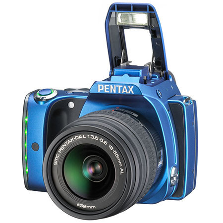 The Pentax K-S1 is a small DSLR with an impressive set of advanced capabilities that are hidden behind a simplified design. With a stripped-down design that borrows several elements from the K-01, the K-S1 is a traditional DSLR with redesigned APS sensor, a contoured grip, a high-quality glass pentaprism, and several colorful indicator LED lights on the front, top and back of the camera.