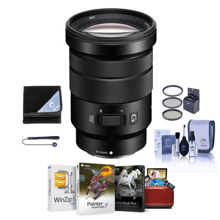 When you're taking movies, this Sony 18-105mm f/4 lens really comes into its own. It has a zoom lever for fixed-speedzooming so that you can slowly move in on your subject without jerkiness, and the ultra-quiet motor doesn't get onto your audio soundtrack. It also has the same aperture throughout the zoom range, letting you keep the same amount of light coming into the lens. This lens bundle kit also includes a variety of filters, a software suite for photo manipulation and a cleaning kit so that you can keep this Sony 18-105mm f/4 lens in top condition wherever you go.