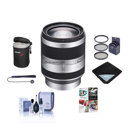 The Sony DT 18-200mm f/3.5-6.3 Zoom Lens for NEX Camera is a can-do lens - an 11x 27-300mm (35mm equivalent) zoom that can handle everything from wide landscape photos to portraits to sports, action and even wildlife photography with the telephoto up to 300mm. And the results will be brilliant, with ED (Extra-low Dispersion) glass that minimizes flare and greatly reduces chromatic aberration, fast internal focusing, 13 groups and 15 elements (including aspherical elements that correct visual aberrations across the entire zoom range) and a circular aperture for more pleasing out-of-focus areas. This lens is not recommended for use with full-frame DSLRs.