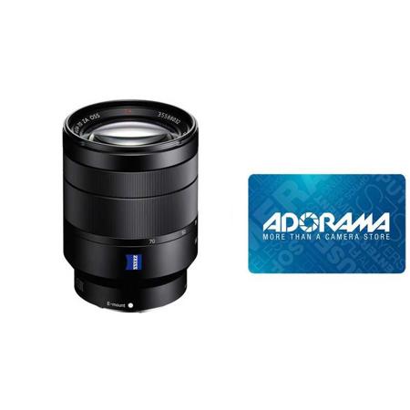 Powerful color accuracy and excellent rendering is yours when you use this Sony 24-70mm f/4 camera lens. It's ideal for full-frame cameras, but you can also useit on crop sensor cameras that use the E-mount system as well as a variety of Sony NEX camcorders. It's ideal as a secondary lens for both studio work and outdoors, thanks to its flexible zoom design that incorporates Carl Zeiss opticsfor impressive color and contrast. Extra-low dispersion glass and aspherical lens elements in this Sony camera lens reduce diffraction, ghosting and flare toproduce outstanding images that are free from optical effects.