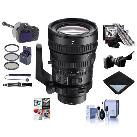 Sony FE PZ 28-135mm f/4 OSS G Lens for Sony E, Bundle with Calibration Aid, LensShifter, 95mm Filter Kit, Lens Shade, Lens Wrap, Cleaning Kit, Lens Cleaner, Lens Cap Tether, Software Kit