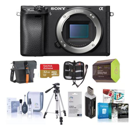 In this Sony Alpha a6300 mirrorless digital camera bundle, you get a tripod to improve overall stability, an extra battery to lengthen the amount of time you spend shooting, and a media card to store your photos on. For maintenance, this camerabundle includes a comprehensive cleaning kit that allows you to keep your camerain tiptop shape, and there's also a competitive software bundle to help you makethe most out of your photos and video. Impressive performance combines with a lightweight design and plenty of accessories to ensure this Sony Alpha a6300 mirrorless digital camera bundle lets produce outstanding photos.