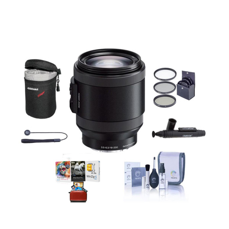 The Sony E PZ 18-200mm f/3.5-6.3 OSS Lens offers a versatile zoom range from 18mm to 200mm, equivalent to 27mm to 300mm in 35mm format.