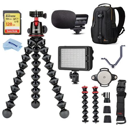 The GorillaPod 5K can now hold a mic, some lights, a phone, GoPro & other accessories to create a portable photo-video-vlogging platform.