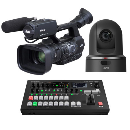 JVC KY-PZ100 2.13MP Robotic PTZ Network Video Production Camera, 30x Optical Zoom, - With Large Package JVC GY-HM660 ProHD Mobile News Streaming Camera, Roland V-60HD Multi-Format HD Video Switcher