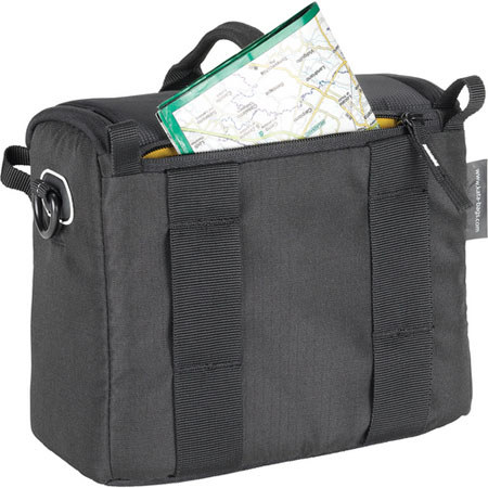 The bag offers three carrying options. The included Elasto-Guard shoulder strap is adjustable and removable. Once removed, you can use the handy belt loops for hands free traveling. The top carry handle is unique in that it is designed to run perpendicular to the rest of the bag. This kind of design gives the bag a thin profile while walking. An easy throw zipper opens the front flap. When the weather turns against you, use the included rain cover to protect your gear from the elements.