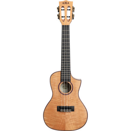 New for 2019, the Solid Flame Maple Series comes in concert and tenor models. Maple offers a clear, transparent tone, and ample projection with great note separation. The figuring of the Maple along with a slotted headstock, florentine cutaway, and purpleheart binding make this ukulele stand out. The Solid Flame Maple series is an all Maple build including the neck. Available in concert and tenor models, both with a cutaway.
