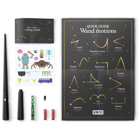 Open the box, pull out the pieces, button & board. Follow the simple steps, build it all by yourself and learn how it works. Connect it to your device and start creating with the Wizarding World.