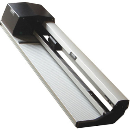 The cutting head of cutter is motor-driven by a steel-reinforced belt, via a foot operated pneumatic switch, leaving both hands free for speedy re-positioning. This is perfect for display/exhibition applications, finishing of all digital media and fast accurate dead straight trimming of pop-ups, encapsulated posters, vinyls and banners.