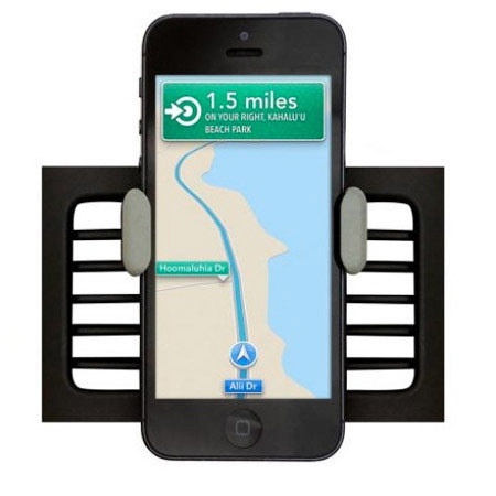 A bit pricey, this little device fits easily into the air vent and holds my Galaxy phone very securely. Great alternative to those bulky suction-cup type phone holders.