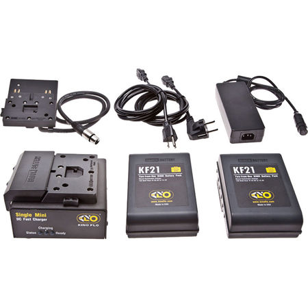 The KF21 battery can power 28.8V (20-34VDC) applications. Run time for Kino Flo products listed above is approximately 1 hour and 10 minutes at full brightness. When fixtures are dimmed, the battery will last longer. Charge time is only 1.5 hours versus Lithium batteries that take approximately 4 hours to fully charge. Unlike lithium batteries, the Kino Flo/BlockBattery is also travel friendly with no travel restrictions. In addition to powering 28.8V, battery adapters may be used to access 14.4V to be used with products with 14.4V input. It's like having two batteries for the price of one!