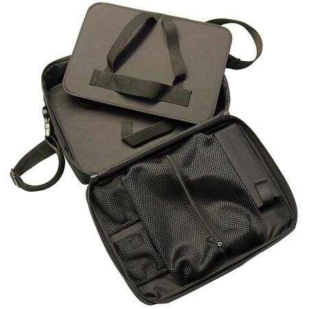 For those who need to carry documents, the case also includes an outer pocket that can comfortably fit documents in A4 or US-letter format. The case is designed with a sturdy handle and a detachable padded shoulder strap, offering versatile carrying options for your convenience.