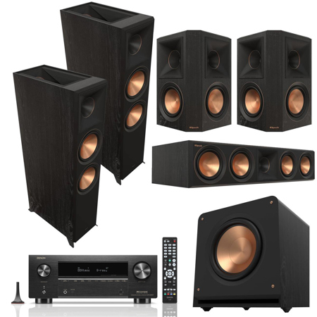 Klipsch Reference 5.1 Home Theater System Bundle with 2x RP-8000F Floorstanding Speaker, RP-504C II Center Speaker, 2x RP-502S II Surround Speakers, RP-1400SW Subwoofer, Denon AVR-X3800H 9.4 Receiver, Ebony