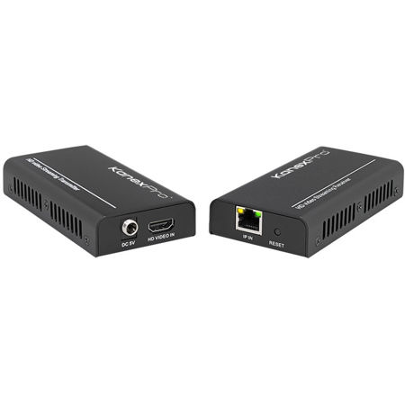 The KanexPro EXT-IPSTREAMKITX1 is an HDMI Over IP Extender set comprised of an encoder and a decoder with PoE (Power-Over Ethernet) support to cost-effectively multicast digital video and audio signals to one or more decoders using 1000Base-T Gigabit Ethernet Network at distances up to 656 feet (or 200m) over CATx cable. It features real-time encoding and decoding in order to broadcast full HD 1080p resolutions and does not require a managed network to operate.