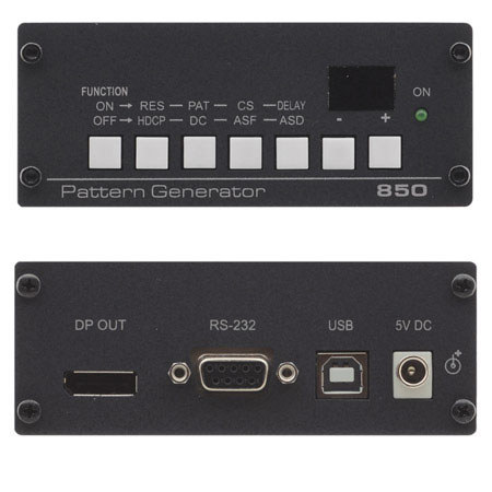 The Kramer Electronics 850 is a high performance DisplayPort video test pattern generator. It can generate 32 preset patterns at 16 popular, predefined computer and HD video resolutions and seven user-defined resolutions, including several unique patterns incorporating motion.