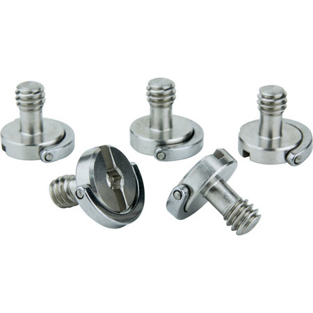The unique design of these screws allows for hand-tightening using the hinged D-ring, or with a screwdriver applied to the flat head slot, offering flexibility based on your specific needs. They are ideal for use with quick-release plates or any device compatible with a 1/4"-20 thread, making them a versatile accessory for photographers and videographers.