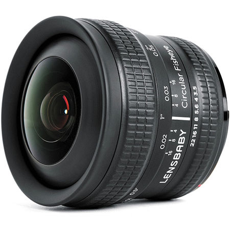 The Lensbaby 5.8mm f/3.5 Circular Fisheye Lens lets you experiment with extreme perspective while focusing as close as 1/4" from the front of your lens. Create anything you can imagine with the multipurpose manual fisheye. The ability to focus 1/4 inch in front of the lens provides an extraordinary way to explore macro photography. Get close enough to a flower to nearly touch it - while capturing the entire garden surrounding it in the frame. The Circular Fisheye lens does not bend. It has a polished interior barrel that creates unique flare when pointed at a light source or reflects the edges of your scene around the image.